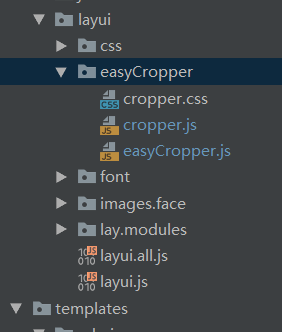 三. 然后将组件的文件夹easyCropper放到能找到的文件夹下即可,我这边是放在layui下面