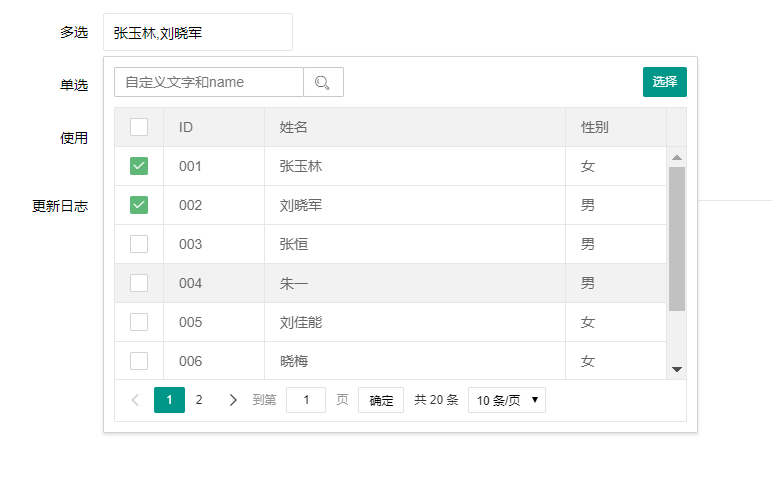 用于庞大数据选择,支持 layui 原生 table 组件的所有功能/自定义关键词搜索/双击选择/默认赋值/分页选中